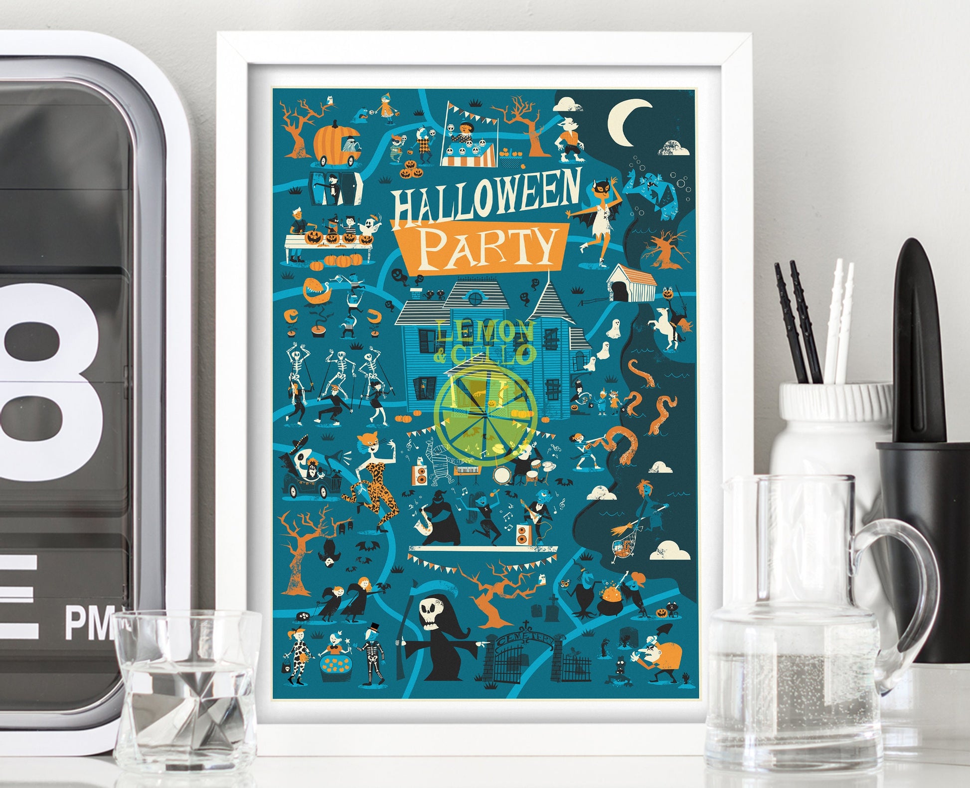 Halloween Poster, Spooky Halloween Decor, Vintage Style Print, Ghost Spider Skeleton