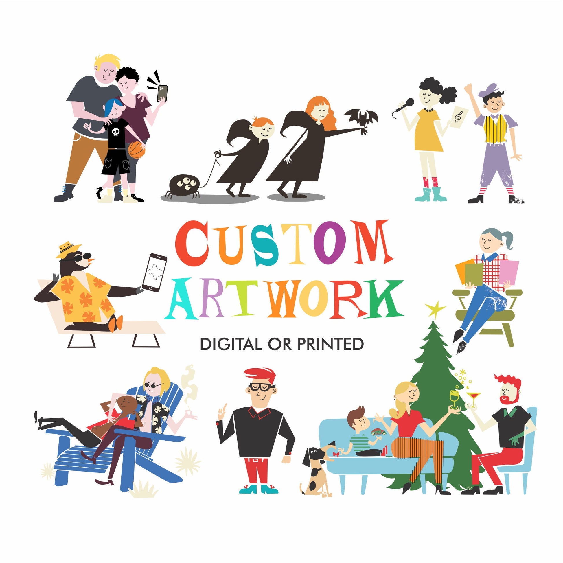 Custom Artwork, Digital or Printed, Funny Cartoon Portrait, Mid 50s Room Wall Decor