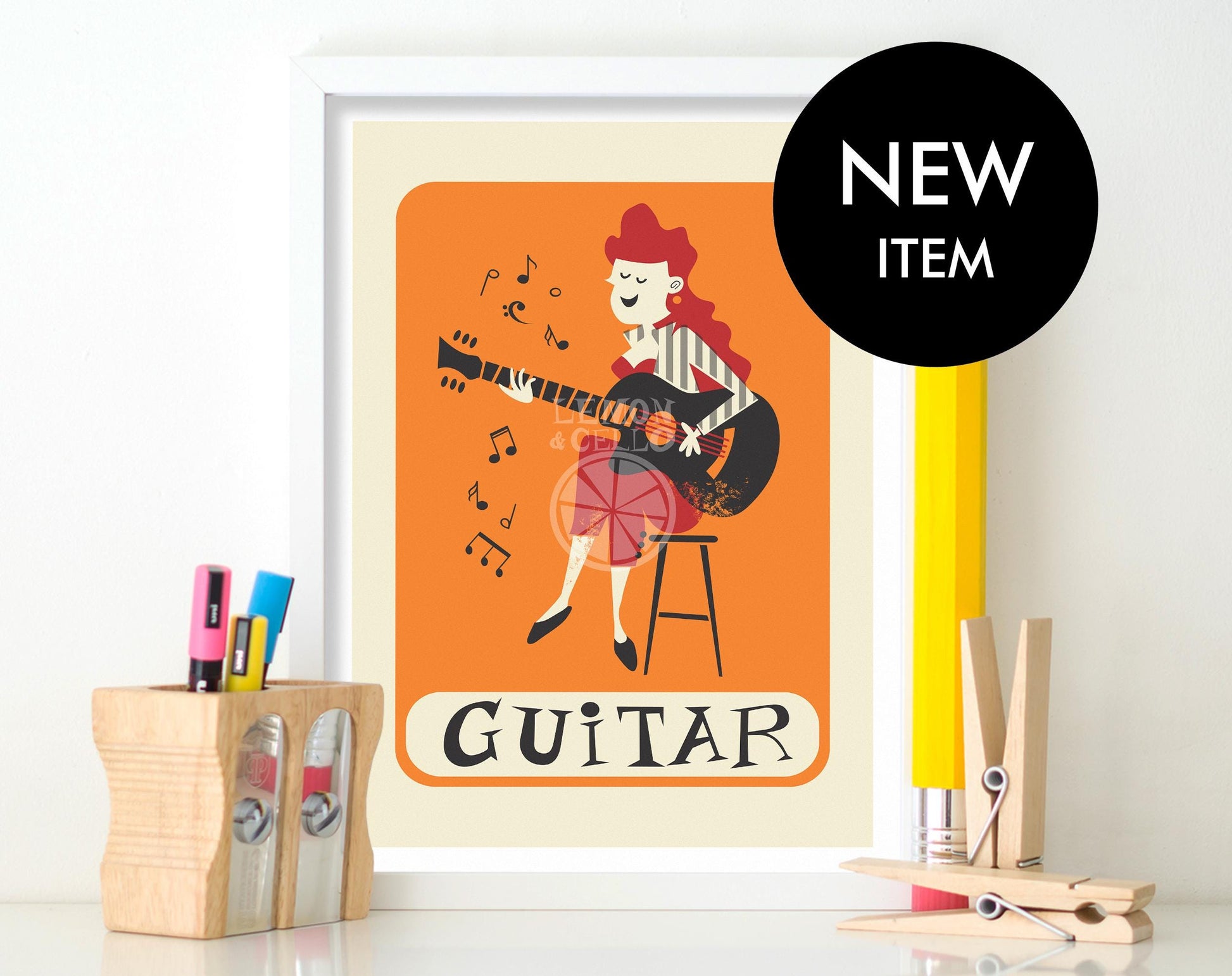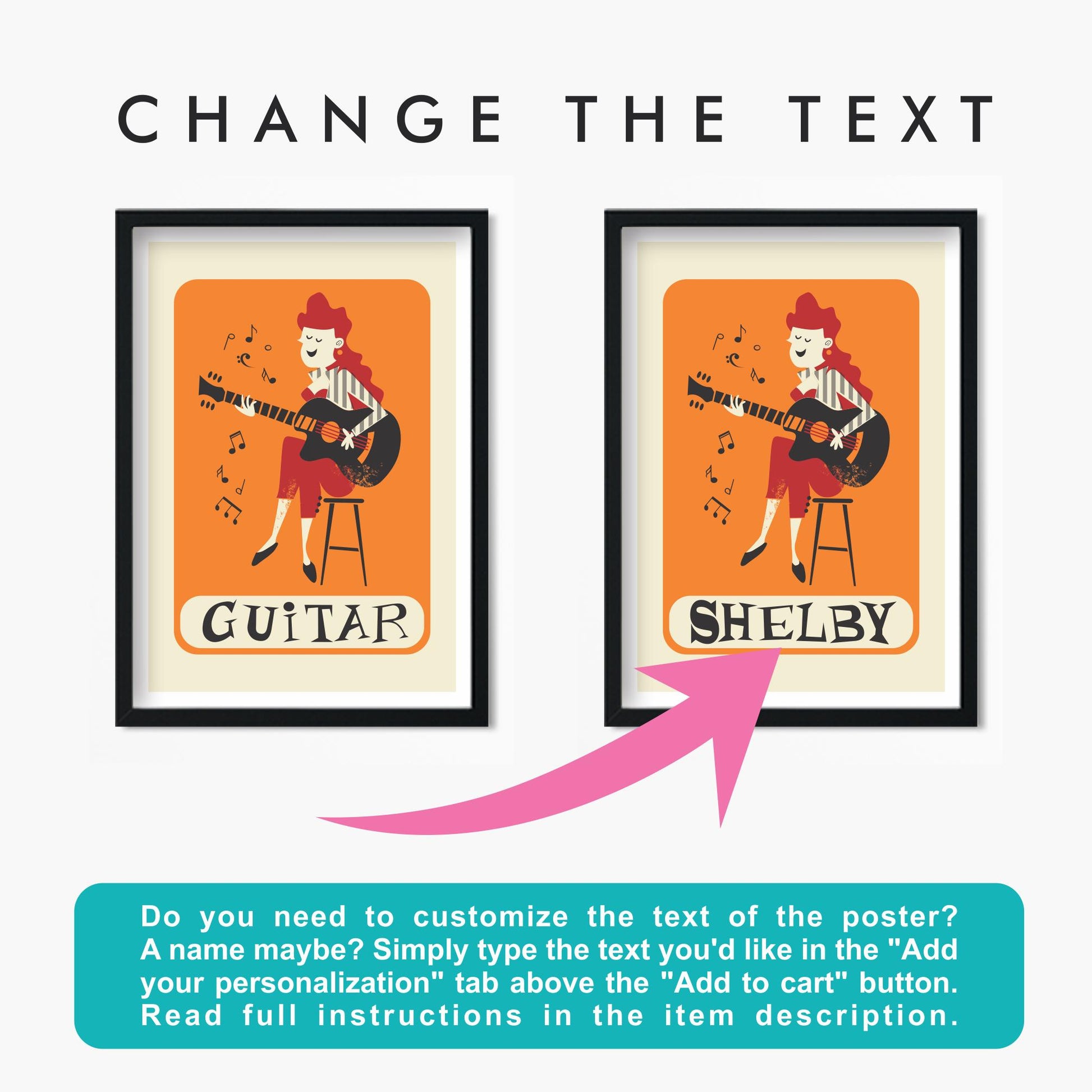 Acoustic Guitar Print, Musician Gift, Personalize Text, Music Lover Gallery Wall Decor