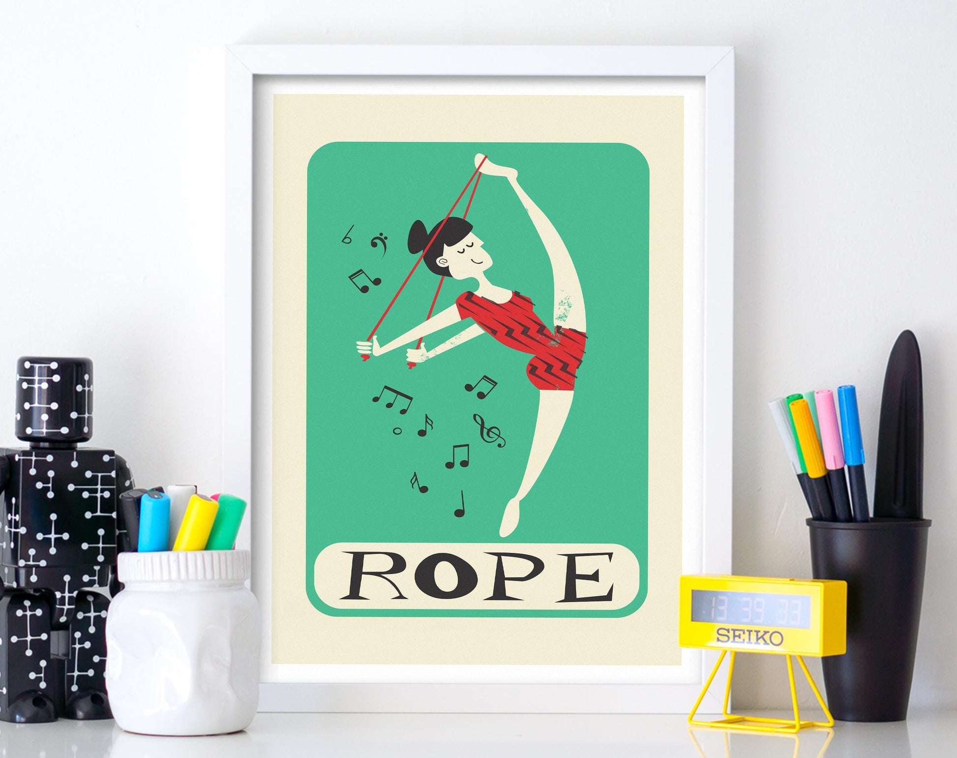 Artistic Rhythmic Rope Gymnastics Print, Girl Acrobat Dancer Poster, Balance Gymnast Sports