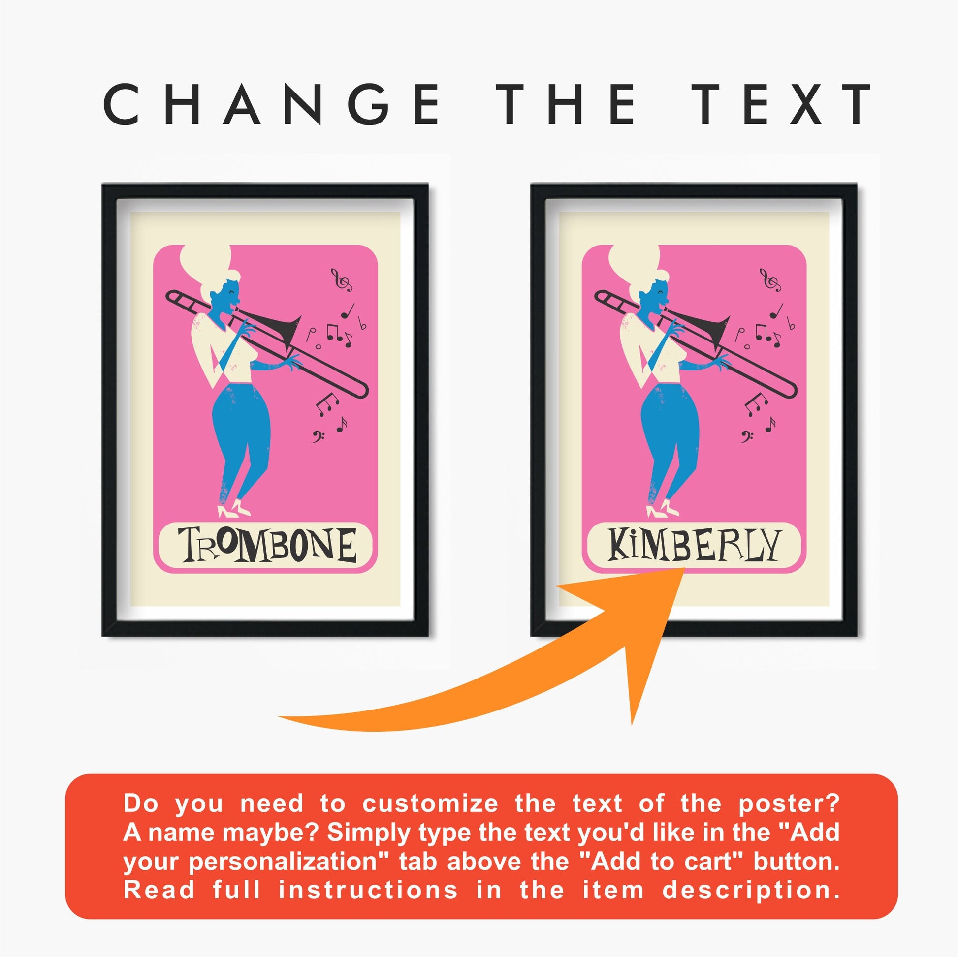 -1. Do you need to change the text of the poster? A name maybe? At Your Cart, simply fill up the "Order special instructions" box, at the bottom left, below the photo of the item.