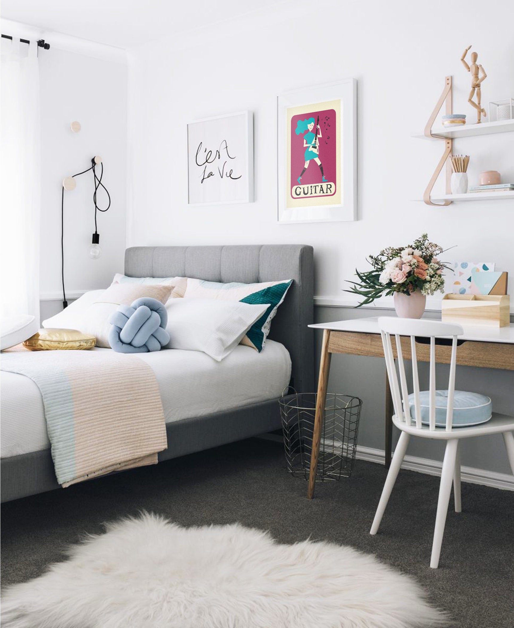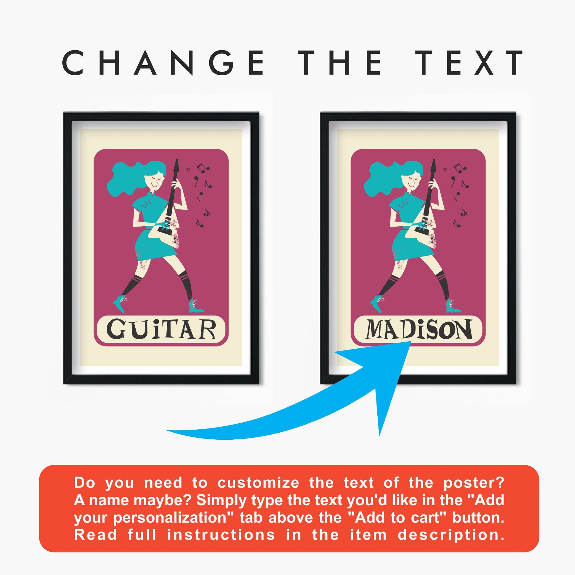 Does your daughter's or sister's room need a makeover? This lovely print might just do the trick! Cool, fun and empowered, this girl is rocking her 80s style guitar.