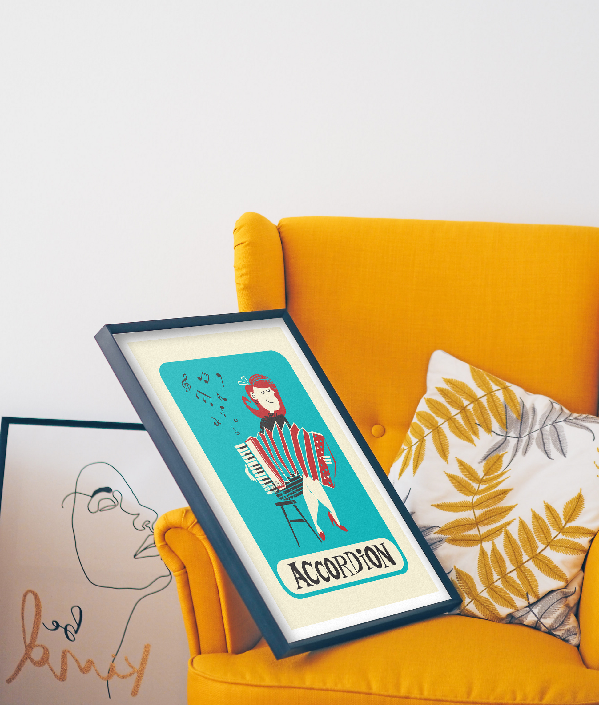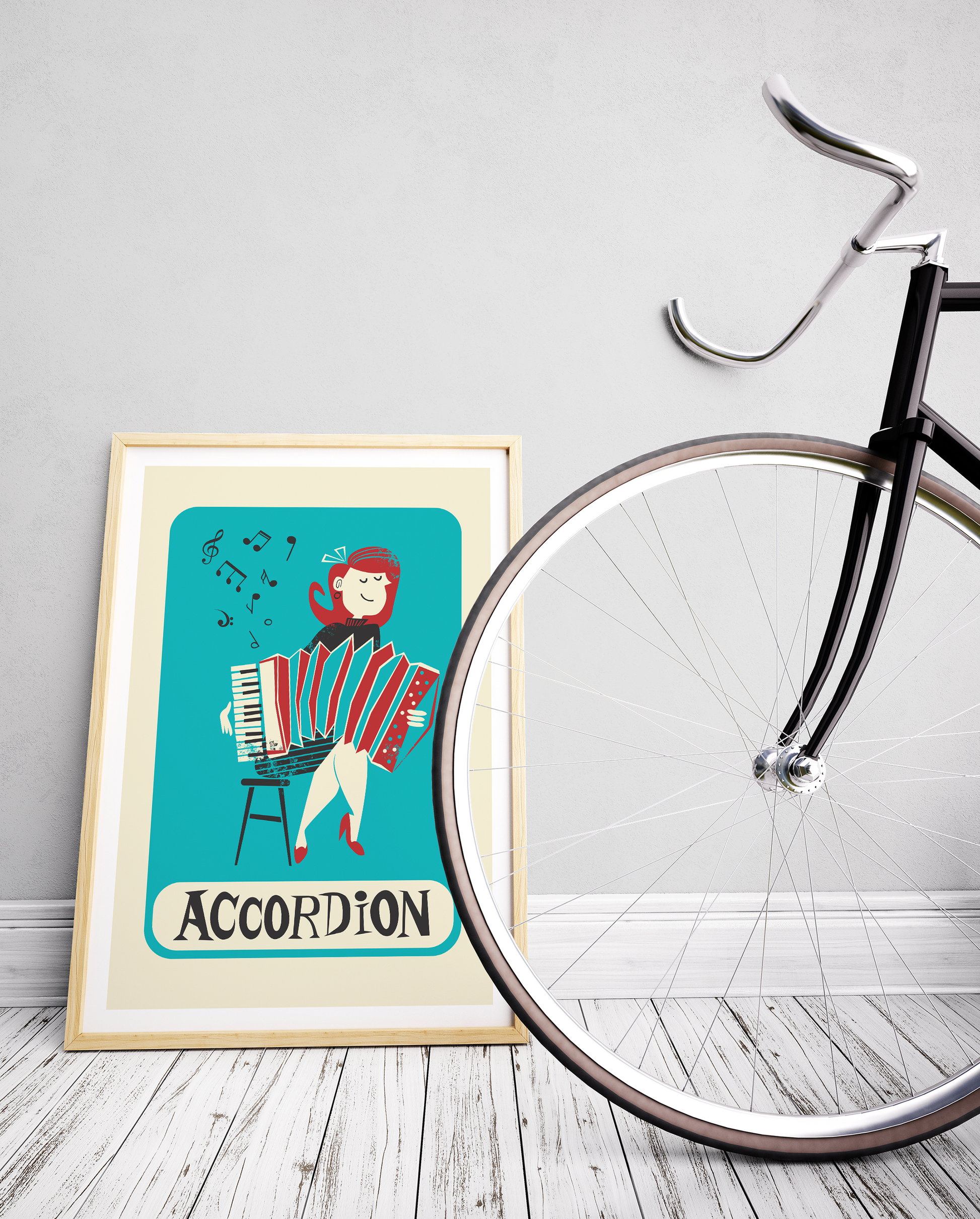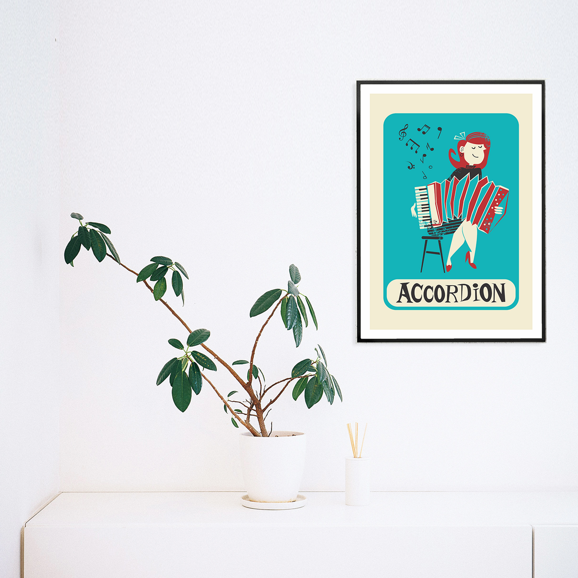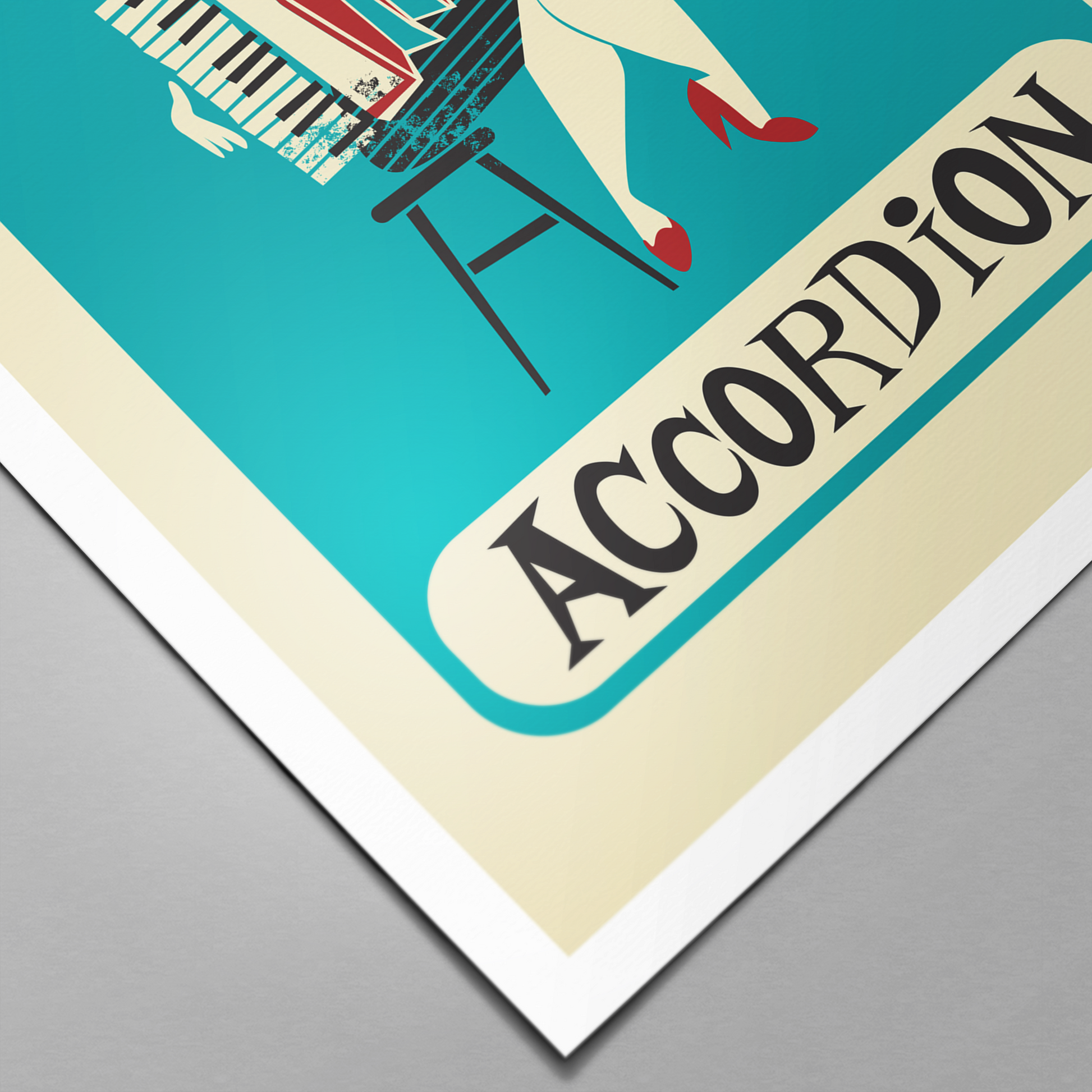 Brighten up any room with this lively Accordion music poster! It’s the perfect gift for the music lover in your life who appreciates a touch of style and fun.
