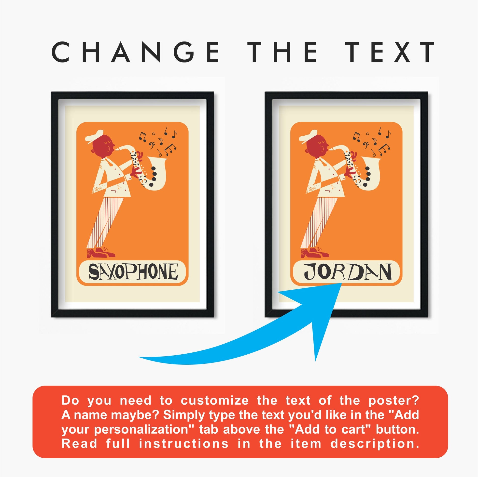 -1. Do you need to change the text of the poster? A name maybe? At Your Cart, simply fill up the "Order special instructions" box, at the bottom left, below the photo of the item.
