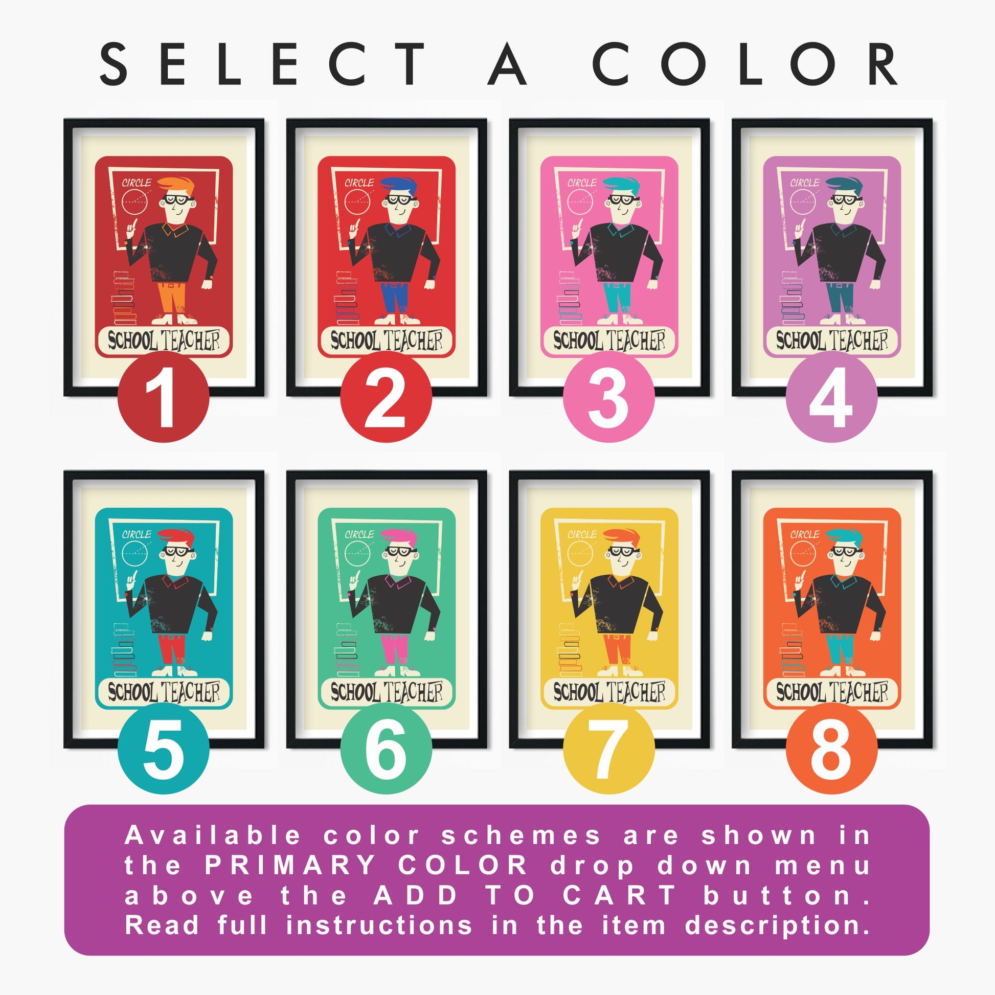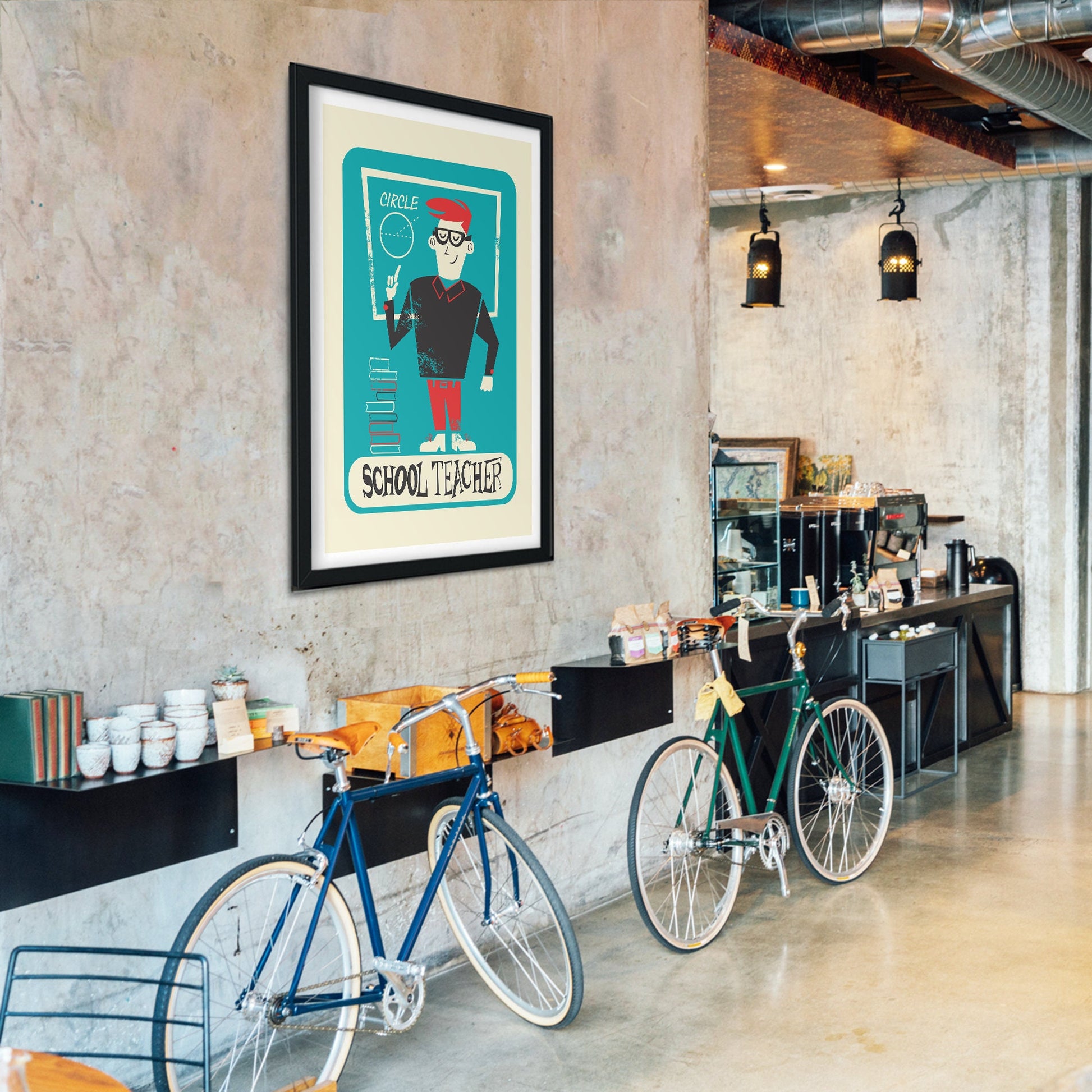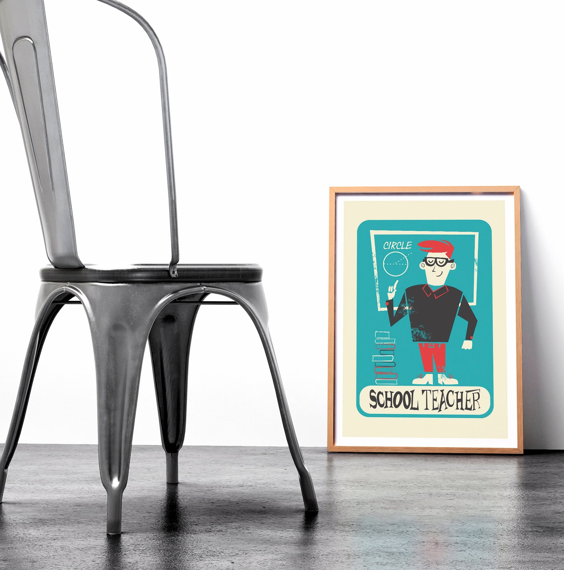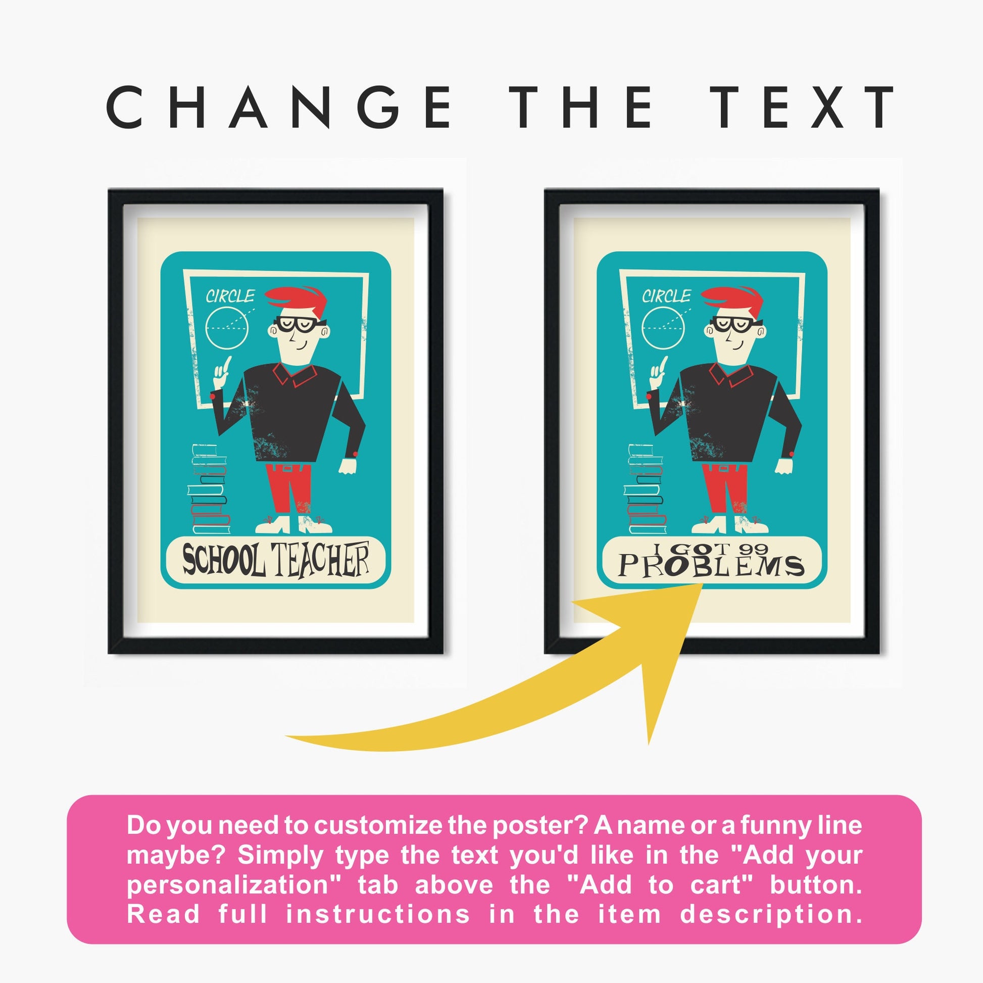 Vintage-style poster featuring a school teacher! No classroom or office is complete without some nice art on the walls, and this print will make a unique statement. You can personalize it with a special name or a custom text. Plus you can change the colors too!