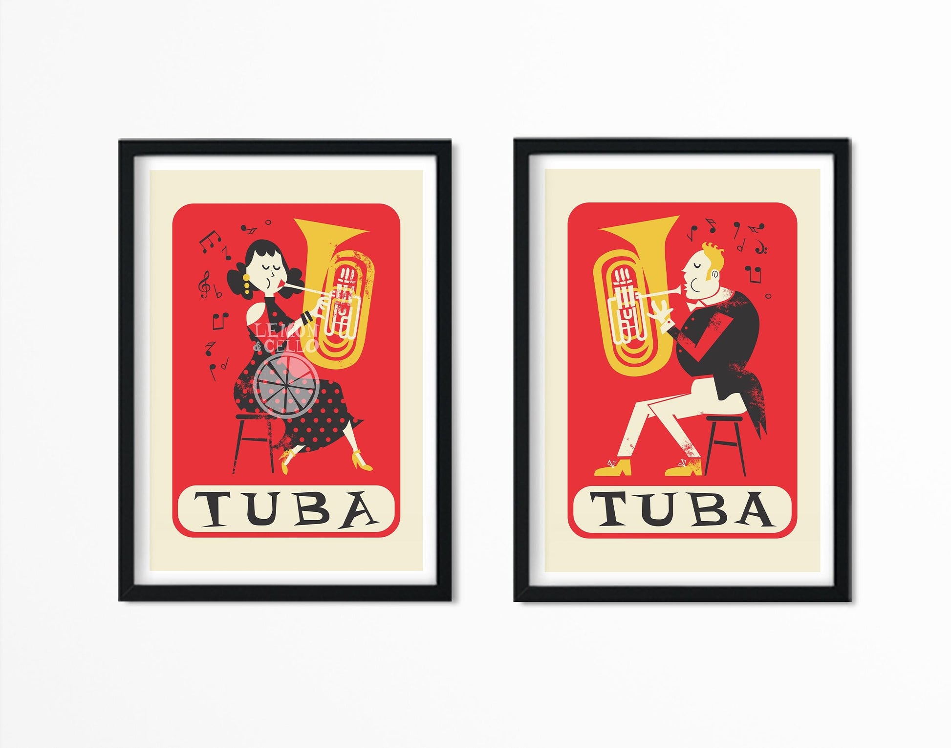 A lovely retro style set of prints - two musicians playing the tuba. If you have a friend who studies classic music, this set of two original posters will make the perfect gift!
