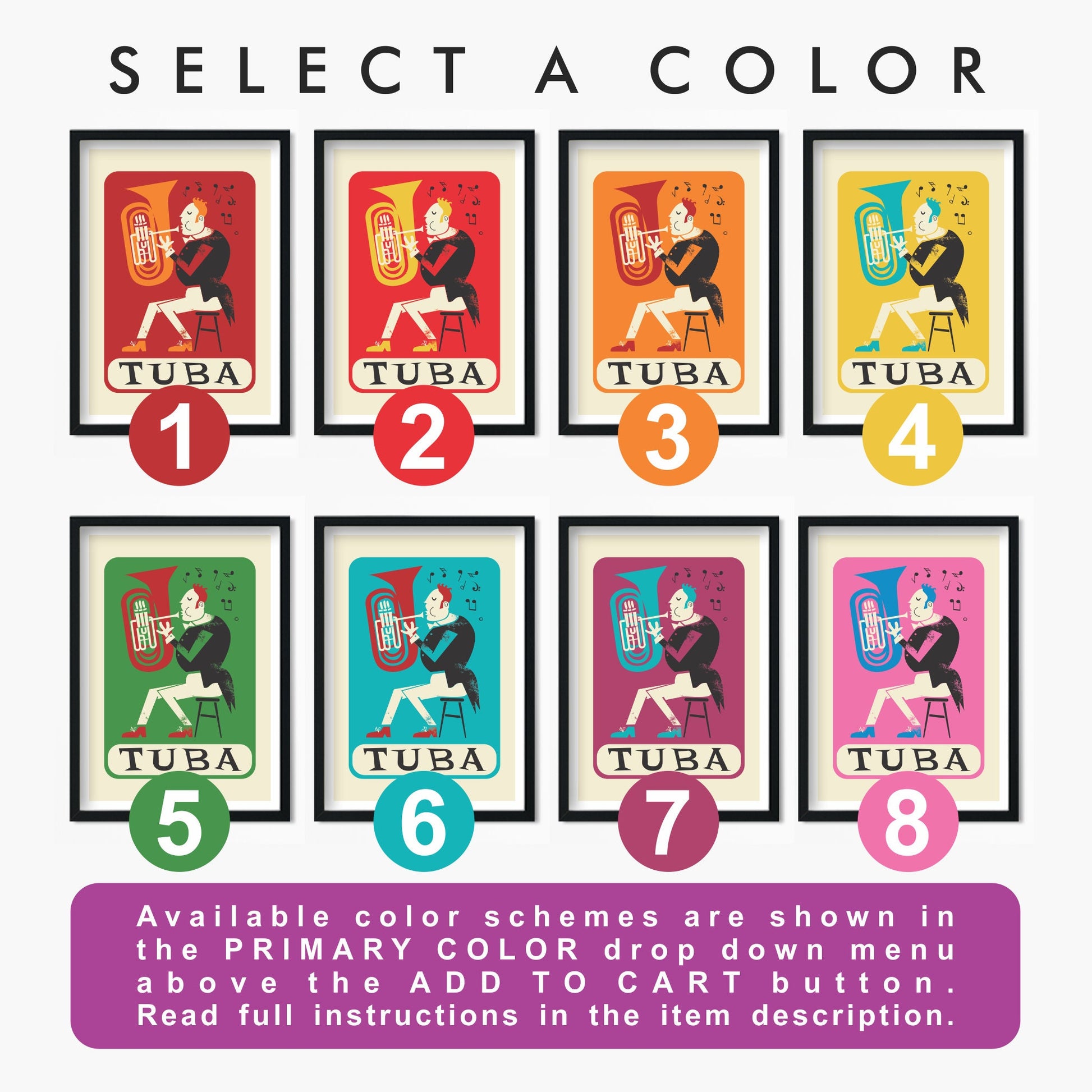 Set Of 2 Tuba Player Posters, Mid 50s Art Prints, Music Studio Wall Hangings, Orchestra Brass