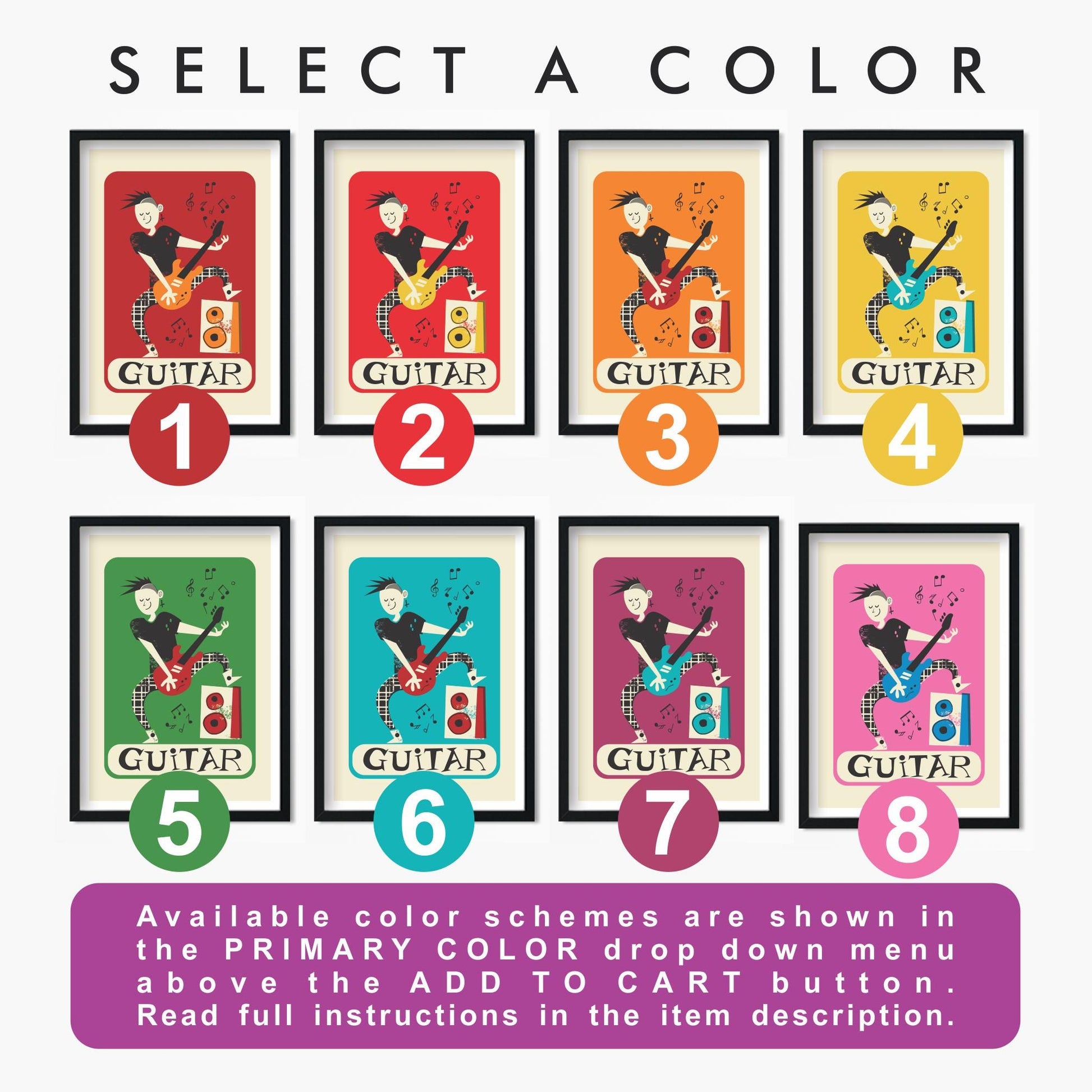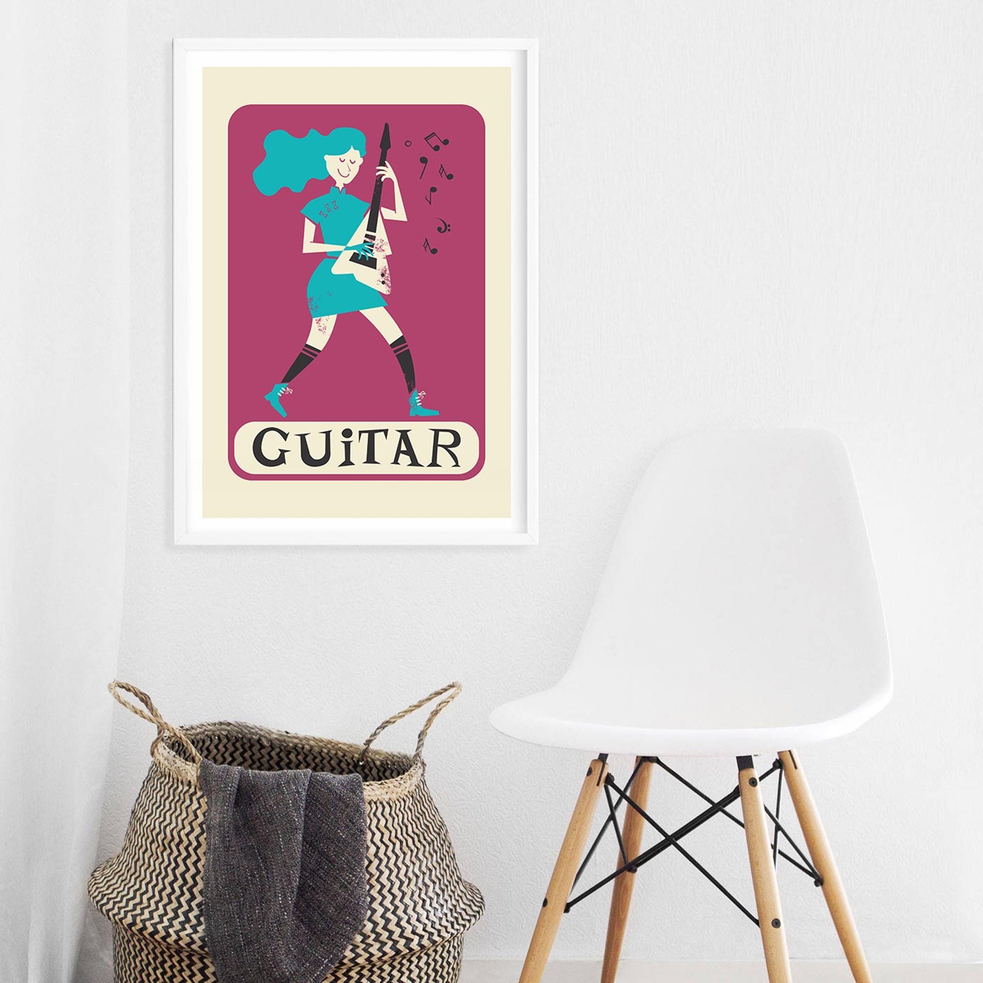Set of Two Guitar Posters, Electric Guitar Indie Rock Players, Gift For Guitarists