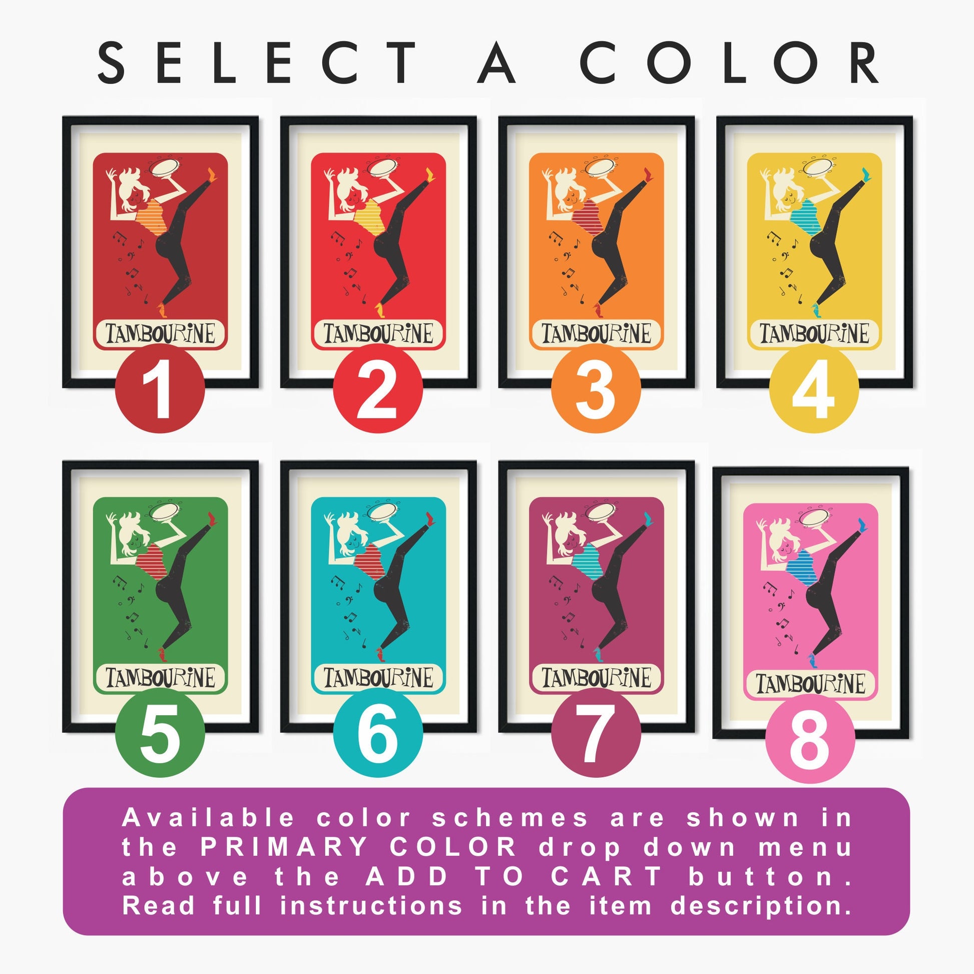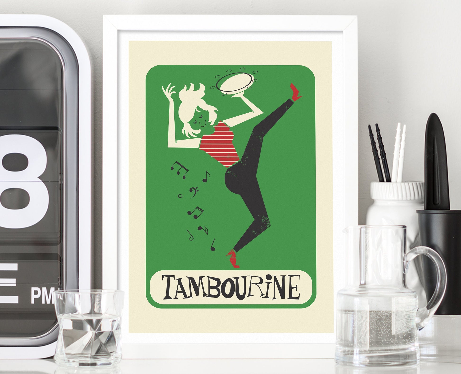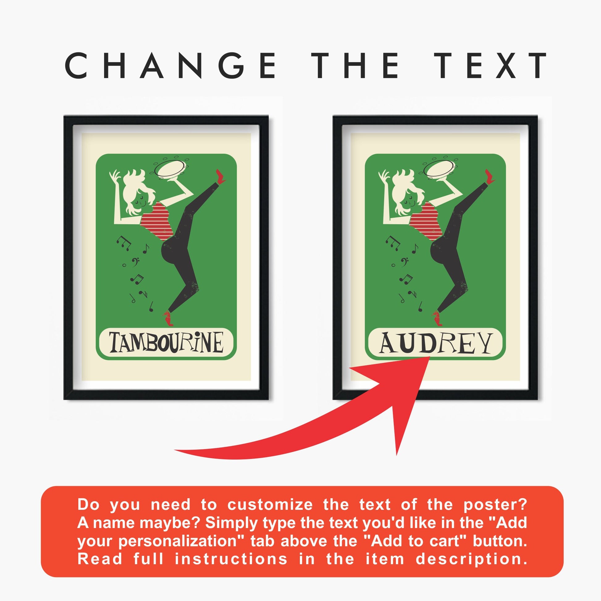 Tambourine Player Retro Poster, Custom Name And Colors, Gift for Her