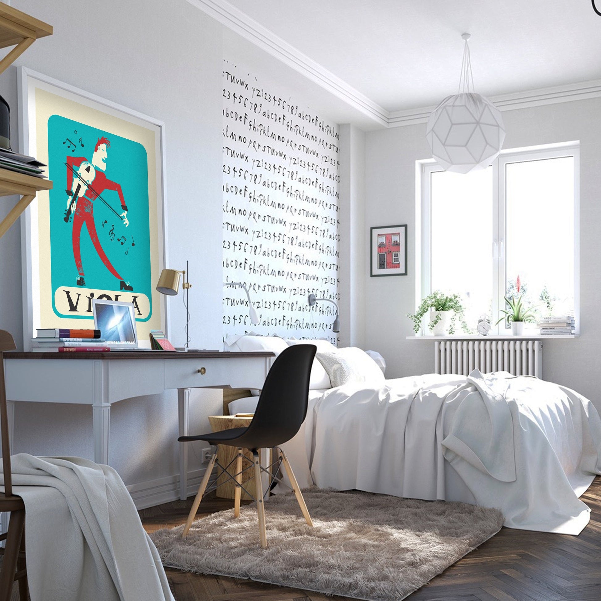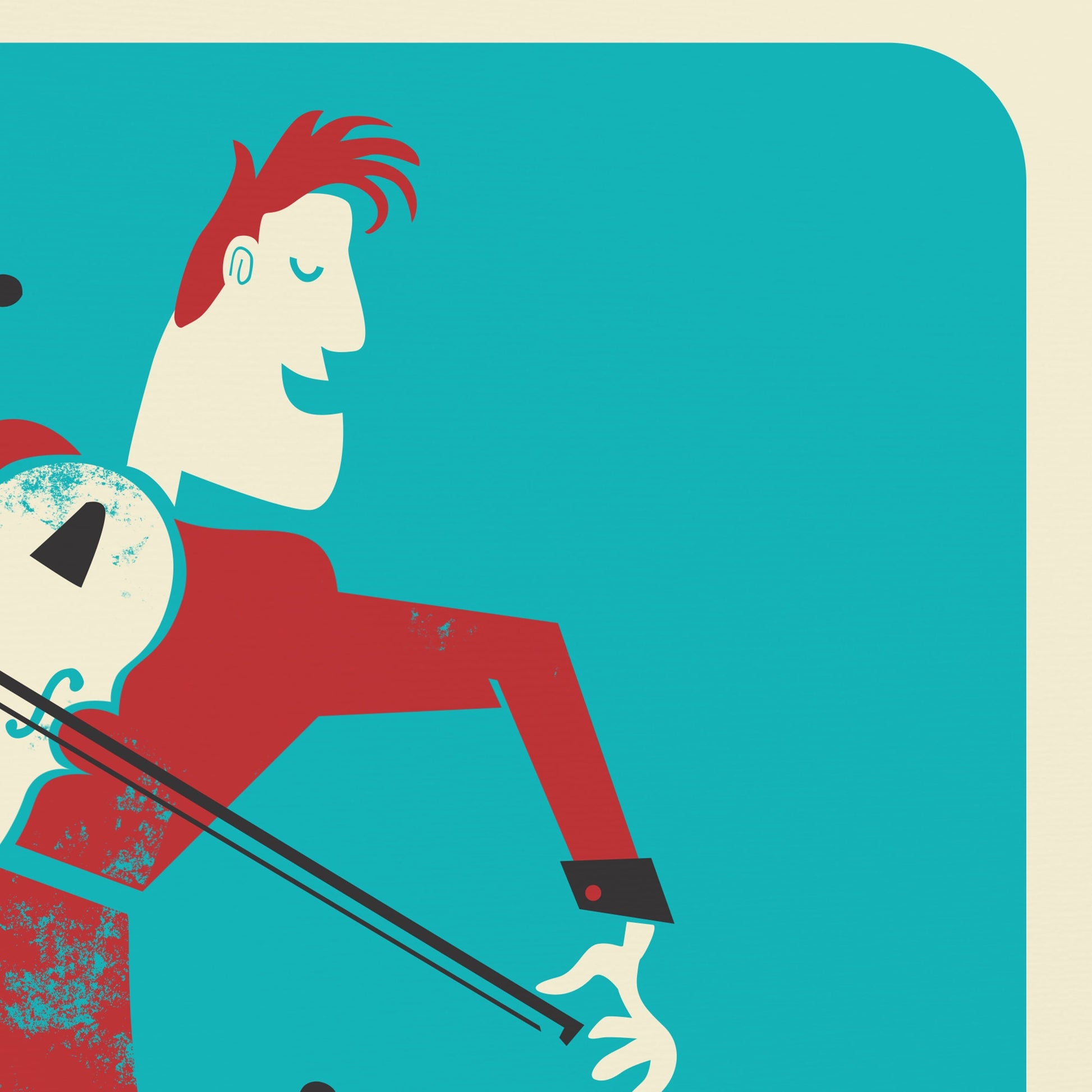 A colorful viola player poster, designed in a retro and vintage style. Perfect decor for your office or bedroom!