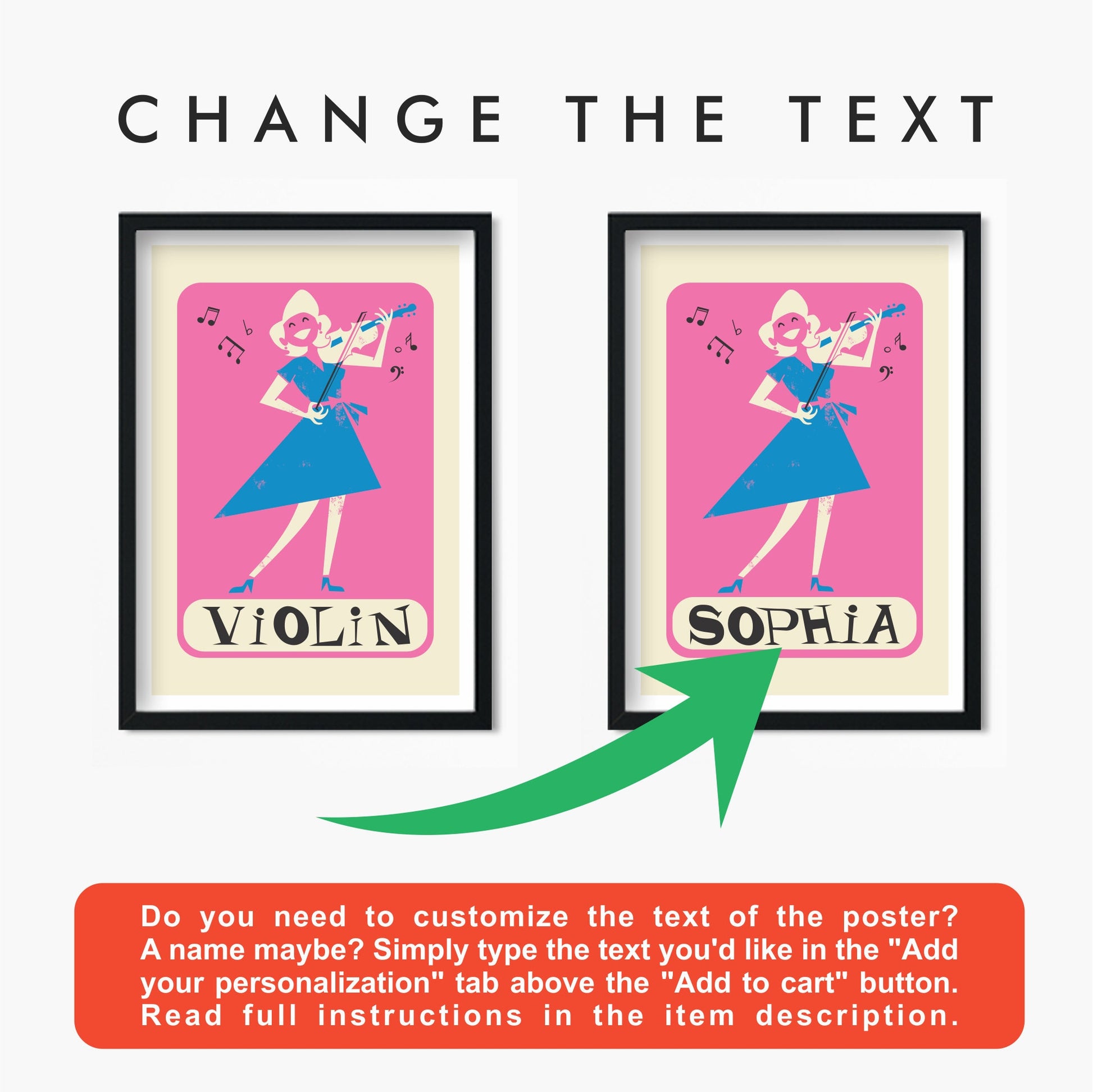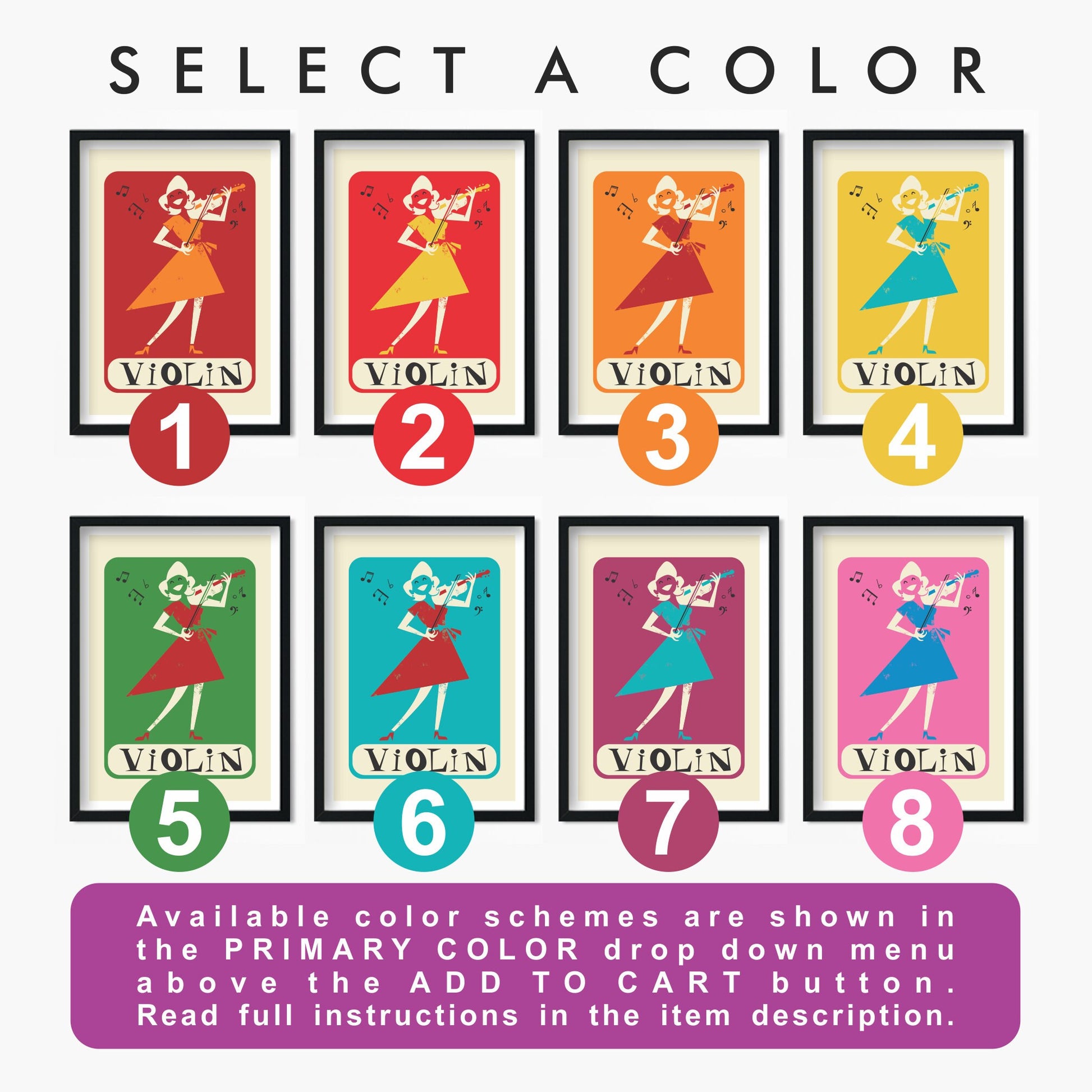 Violin Print, Living Room Wall Art, Gift for Teacher, Color of Your Choice, Mid 50s